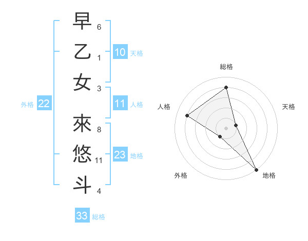 早乙女 來悠斗さんを姓名の画数から五運を鑑定