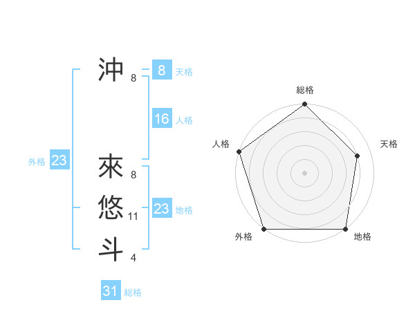 沖 來悠斗さんを姓名の画数から五運を鑑定