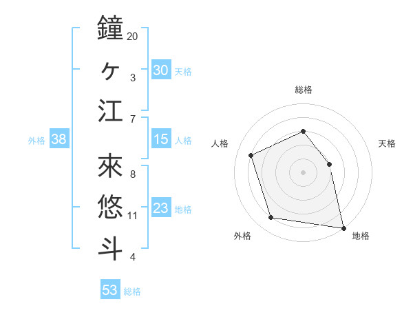 鐘ヶ江 來悠斗さんの総格は53画の3点