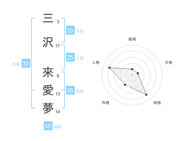 三沢 來愛夢さんを姓名の画数から五運を鑑定