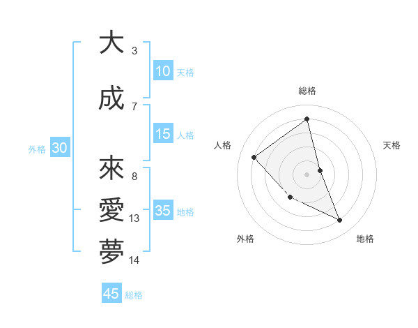 大成 來愛夢さんの総格は45画の4点!