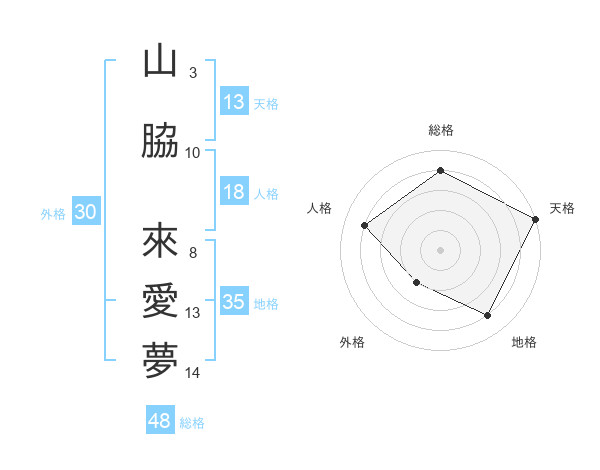 山脇 來愛夢さんを姓名の画数から五運を鑑定