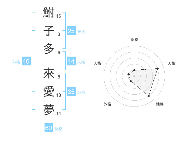 鮒子多 來愛夢さんを姓名の画数から五運を鑑定