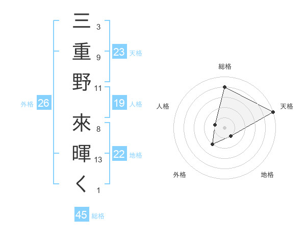 三重野 來暉くさんを姓名の画数から五運を鑑定
