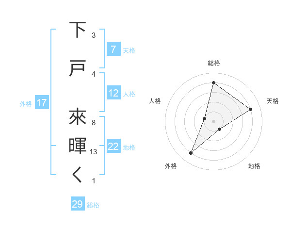 下戸 來暉くさんを姓名の画数から五運を鑑定