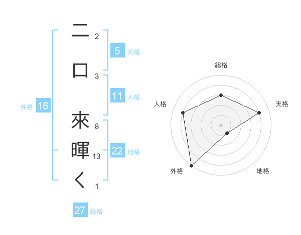 二口 來暉くさんの外格は16画の5点!