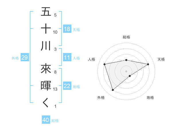 五十川 來暉くさんを姓名の画数から五運を鑑定