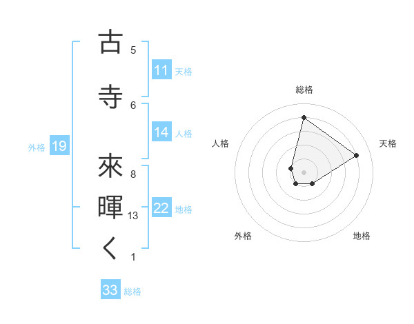 古寺 來暉くさんを姓名の画数から五運を鑑定