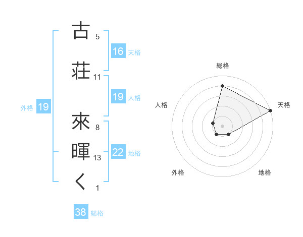 古荘 來暉くさんを姓名の画数から五運を鑑定