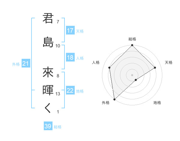 君島 來暉くさんを姓名の画数から五運を鑑定