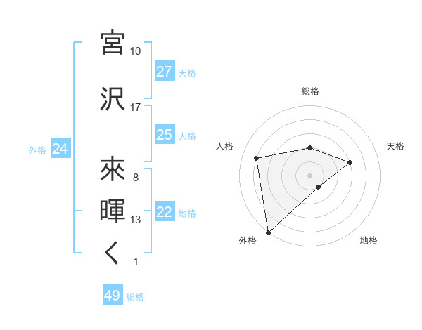 宮沢 來暉くさんを姓名の画数から五運を鑑定