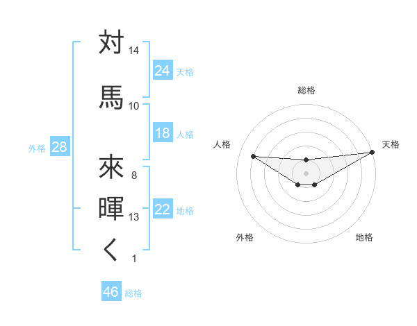 対馬 來暉くさんを姓名の画数から五運を鑑定