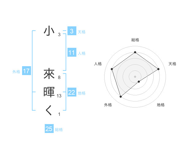 小 來暉くさんの地格は22画の1点!