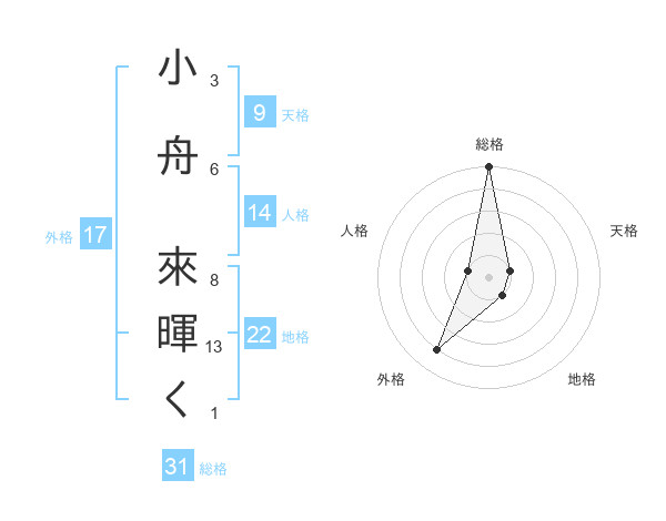 小舟 來暉くさんを姓名の画数から五運を鑑定