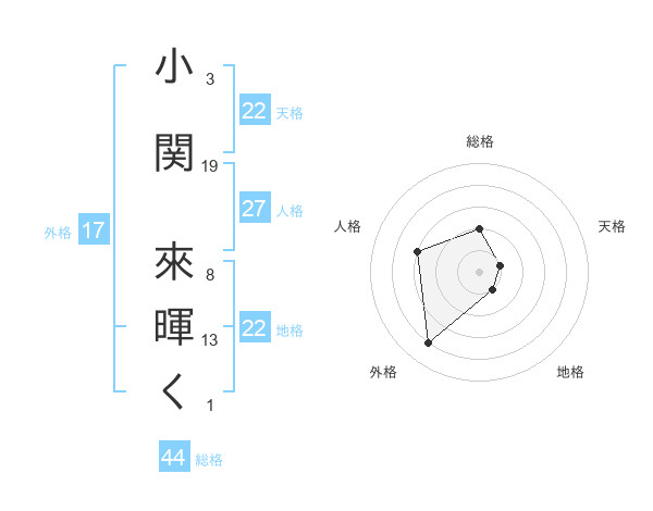 小関 來暉くさんを姓名の画数から五運を鑑定