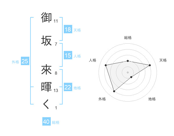 御坂 來暉くさんの外格は25画の4点!