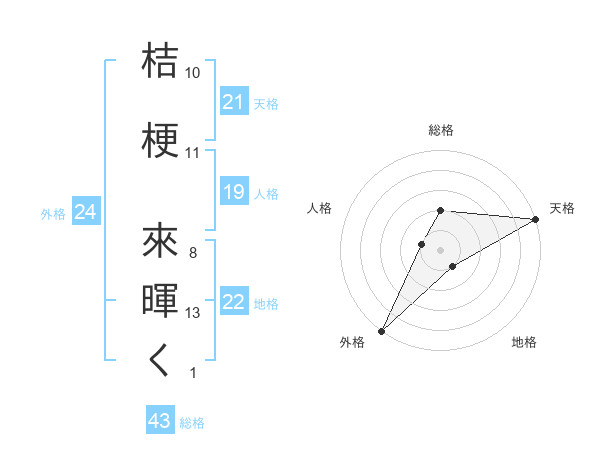 桔梗 來暉くさんの総格は43画の2点!
