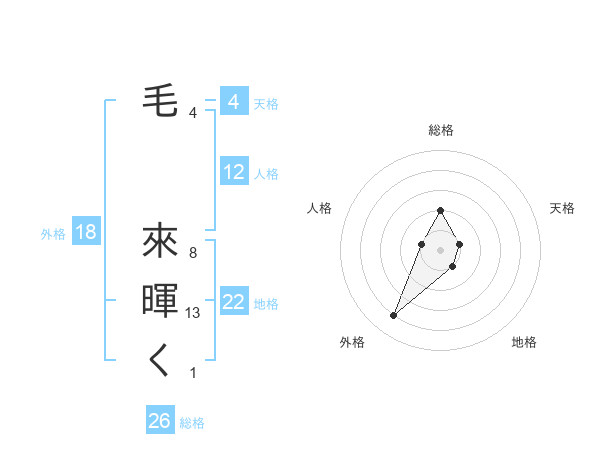 毛 來暉くさんを姓名の画数から五運を鑑定