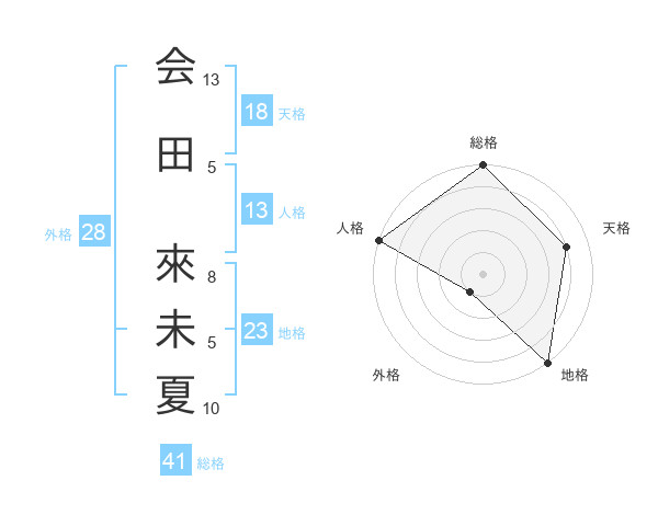 会田 來未夏さんの天格は18画の4点!