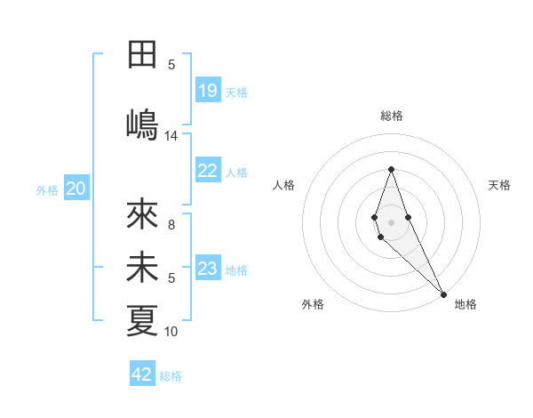 田嶋 來未夏さんの総格は42画の3点