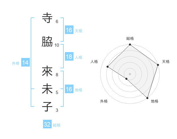 寺脇 來未子さんを姓名の画数から五運を鑑定