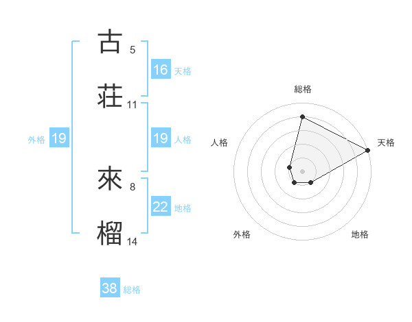 古荘 來榴さんを姓名の画数から五運を鑑定