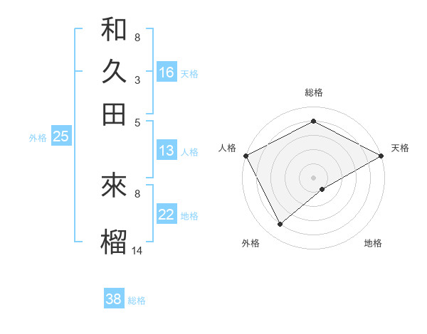 和久田 來榴さんを姓名の画数から五運を鑑定