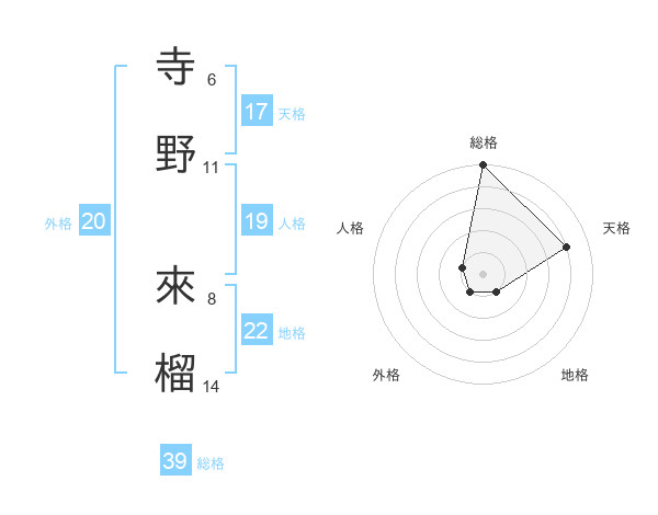 寺野 來榴さんを姓名の画数から五運を鑑定