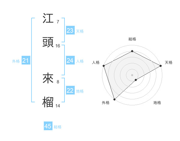 江頭 來榴さんを姓名の画数から五運を鑑定