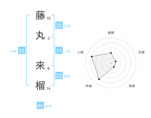 藤丸 來榴さんを姓名の画数から五運を鑑定