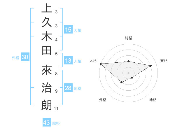 上久木田 來治朗さんの天格は15画の4点!