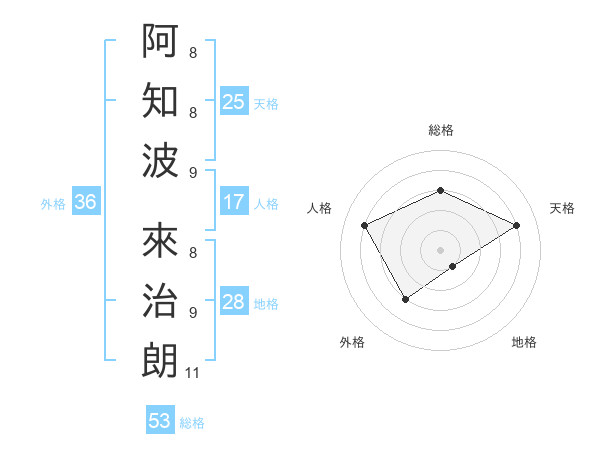 阿知波 來治朗さんを姓名の画数から五運を鑑定