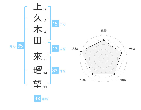 上久木田 來瑠望さんを姓名の画数から五運を鑑定