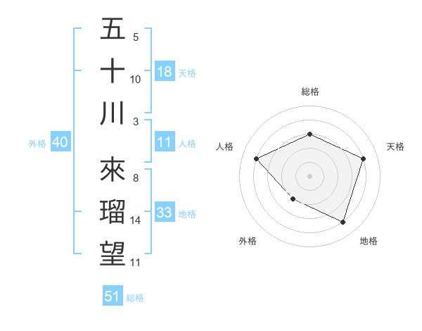 五十川 來瑠望さんを姓名の画数から五運を鑑定