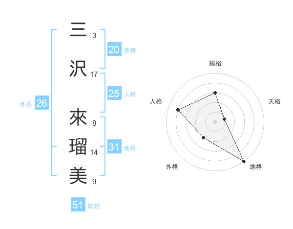 三沢 來瑠美さんを姓名の画数から五運を鑑定