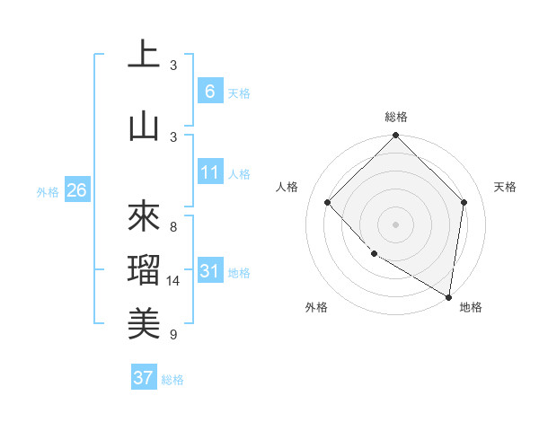 上山 來瑠美さんを姓名の画数から五運を鑑定