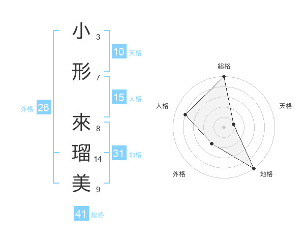小形 來瑠美さんを姓名の画数から五運を鑑定