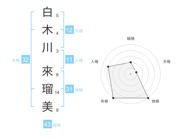 白木川 來瑠美さんを姓名の画数から五運を鑑定