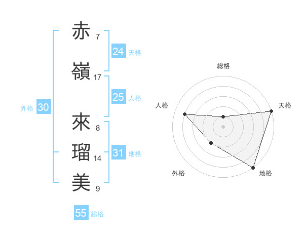 赤嶺 來瑠美さんを姓名の画数から五運を鑑定