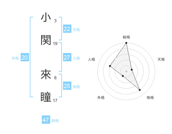 小関 來瞳さんを姓名の画数から五運を鑑定