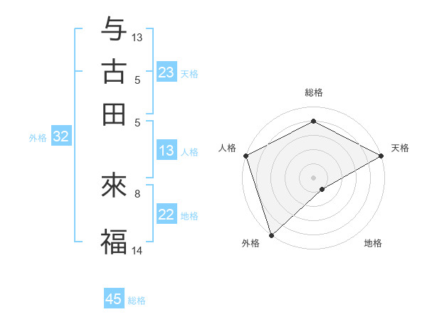 与古田 來福さんの天格は23画の5点!