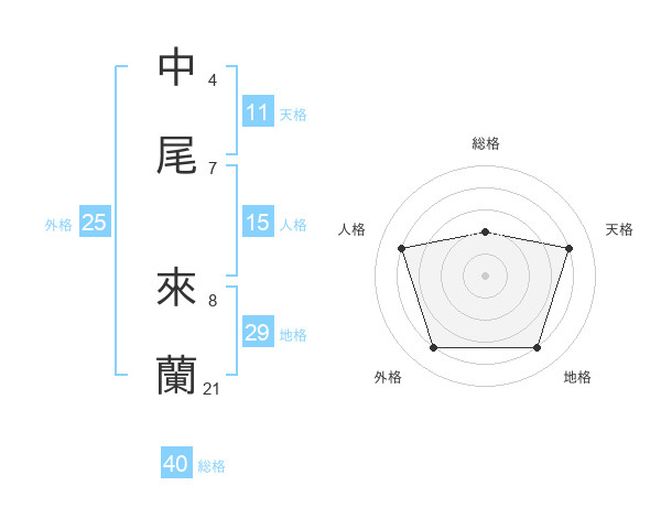 中尾 來蘭さんを姓名の画数から五運を鑑定