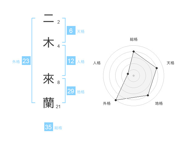 二木 來蘭さんの総格は35画の4点!
