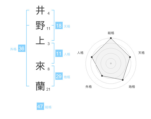 井野上 來蘭さんを姓名の画数から五運を鑑定