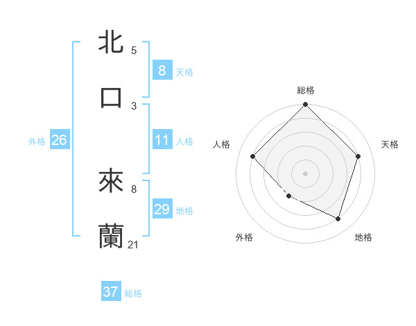 北口 來蘭さんを姓名の画数から五運を鑑定