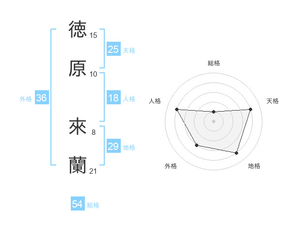 徳原 來蘭さんを姓名の画数から五運を鑑定