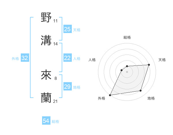 野溝 來蘭さんの外格は32画の5点!