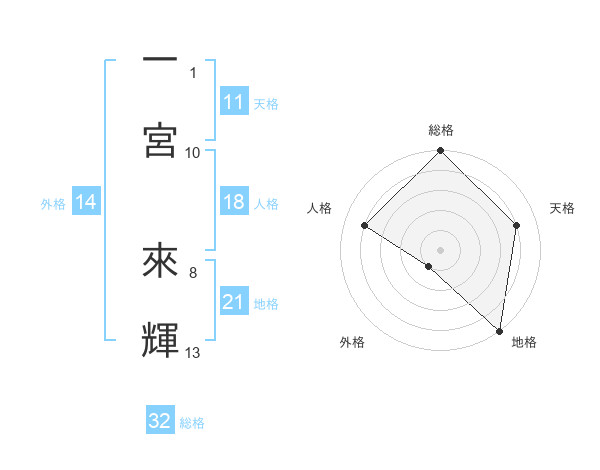 一宮 來輝さんの総格は32画の5点!