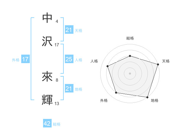 中沢 來輝さんを姓名の画数から五運を鑑定