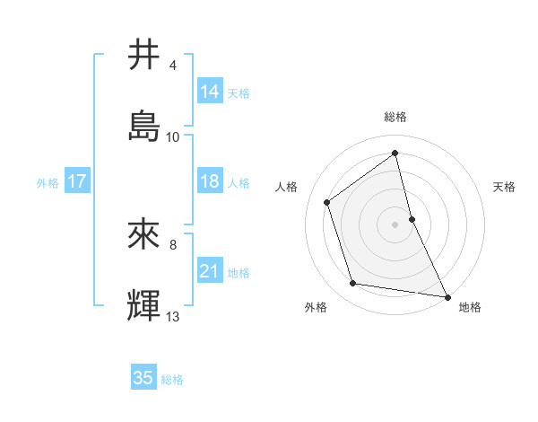 井島 來輝さんの総格は35画の4点!